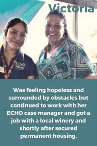Established in 2001, ECHO empowers people in SLO County to make positive change by providing food, shelter, and supportive services.Their various services ensure that individuals and families struggling with homelessness can find jobs, get fed, stay healthy, and find housing.